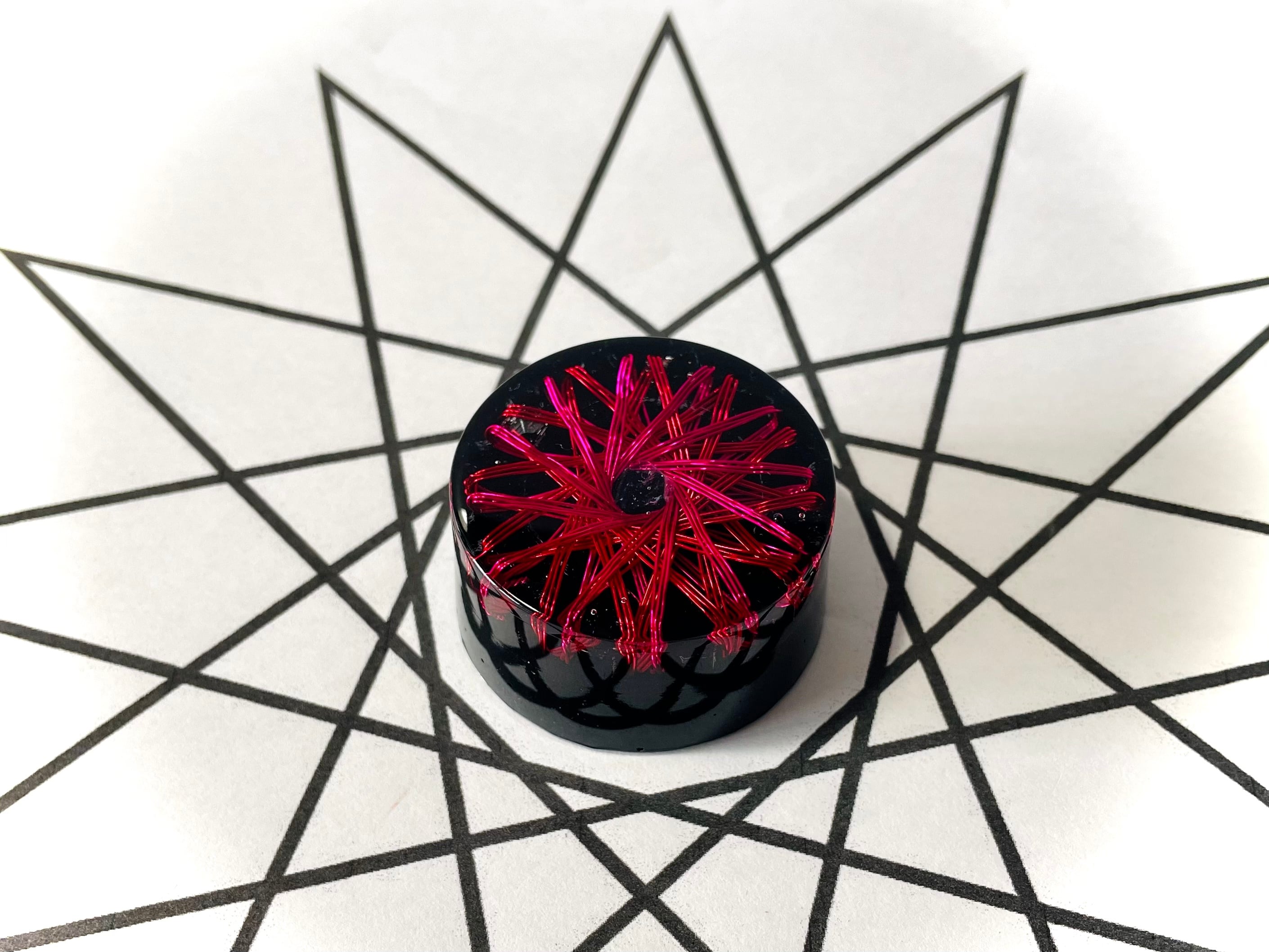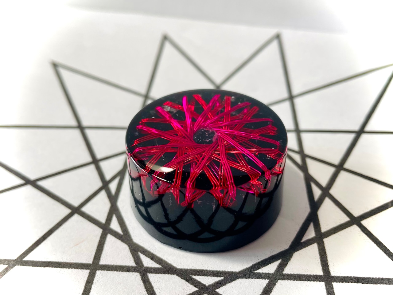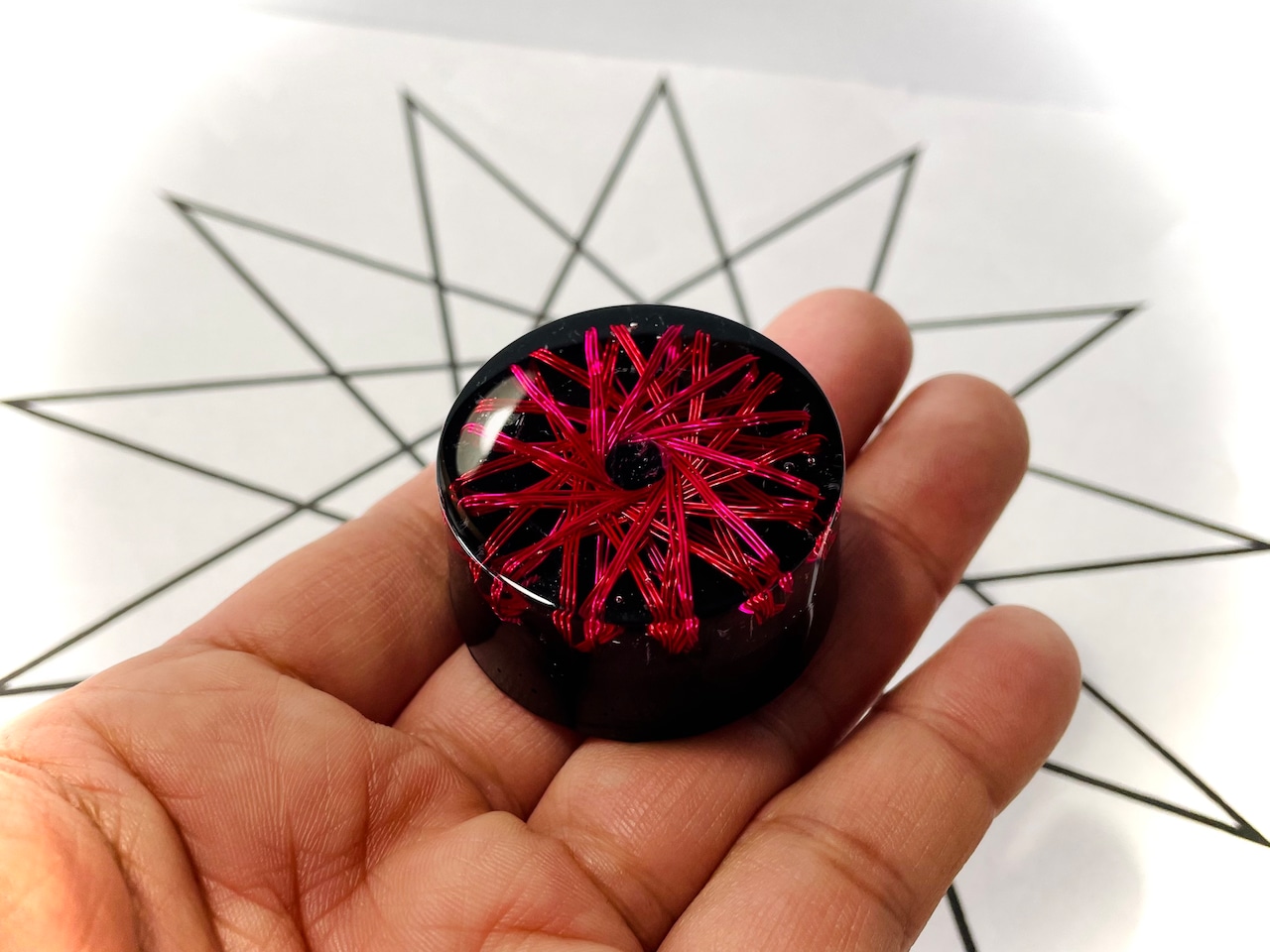 特殊な法則で十二芒星のデザインで銅線を巻くことにより、中心にトーラス状のvortexエネルギーを発生させます