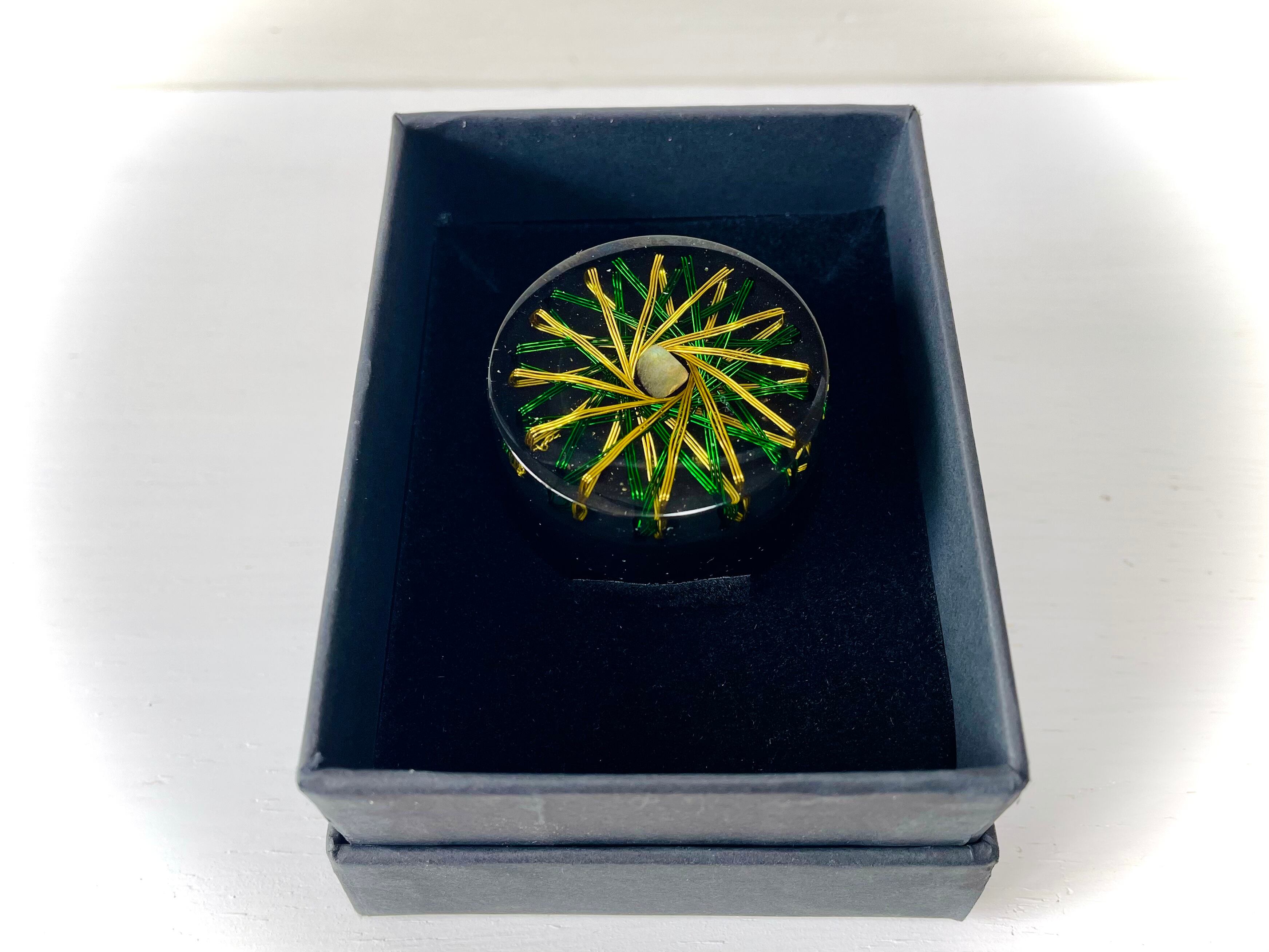 ~vortexエネルギー~ 【ミニvortexオルゴナイト零】円柱型 12グリッド×2中庸(グリーン&ゴールド)