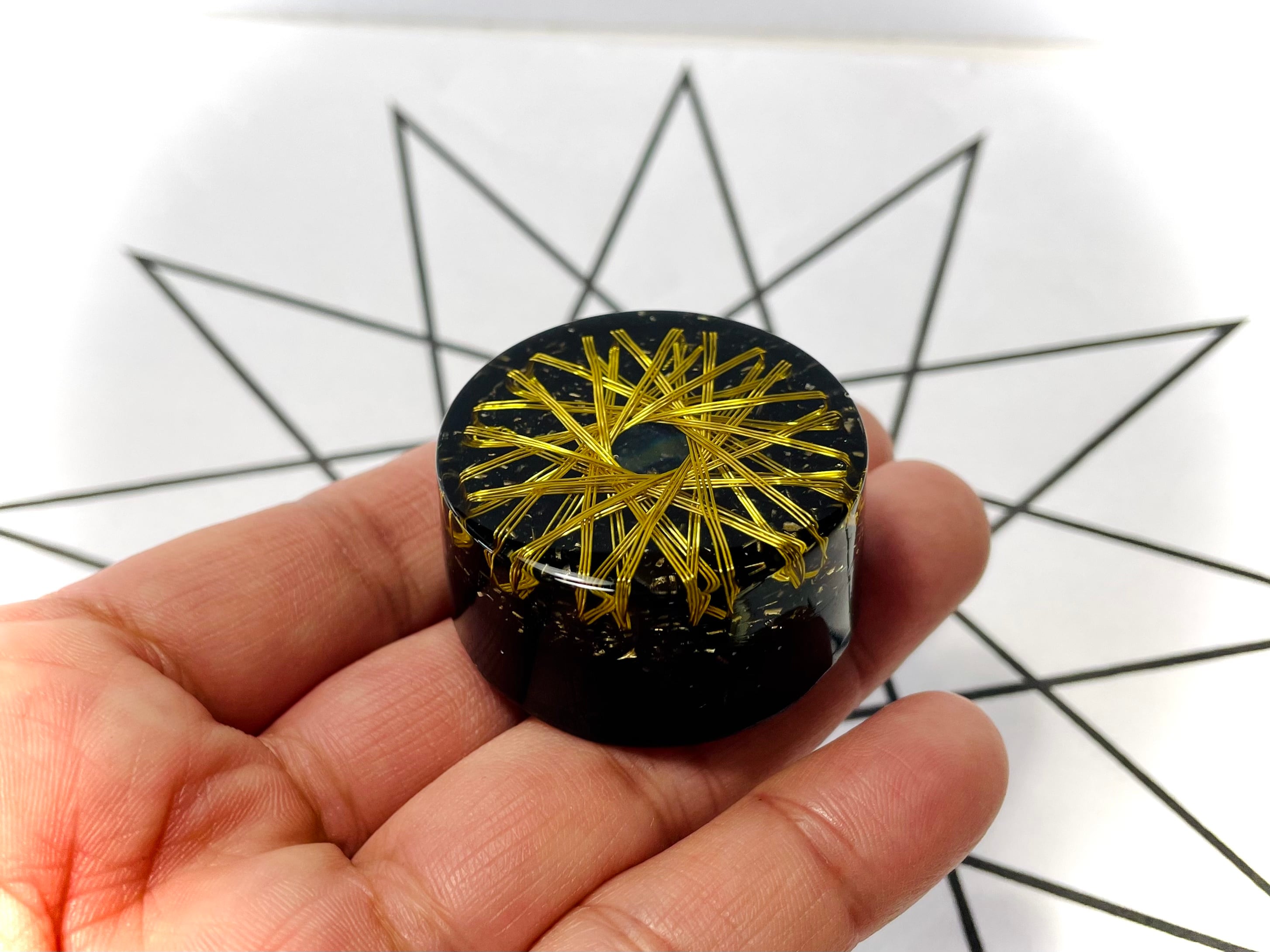 特殊な法則で十二芒星のデザインで銅線を巻くことにより、中心にトーラス状のvortexエネルギーを発生させます