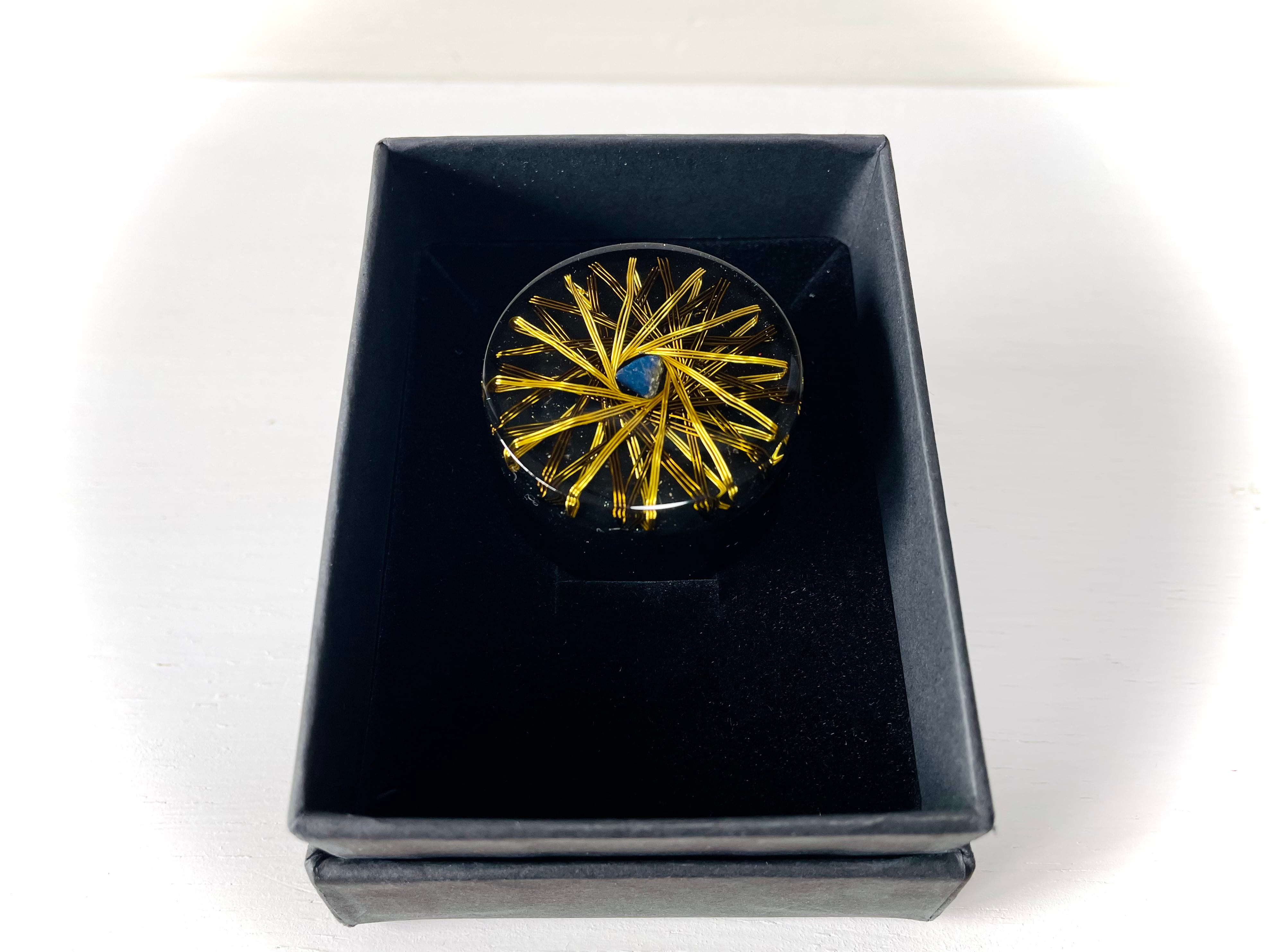 【仕様】:レジン・十二芒星vortexコイル・銅線をスパイラル巻いたポイント水晶・ブラックシリカ・ラブラドライト・祈りの真鍮金属・宮古島の麻炭・クリスタルの波動転写