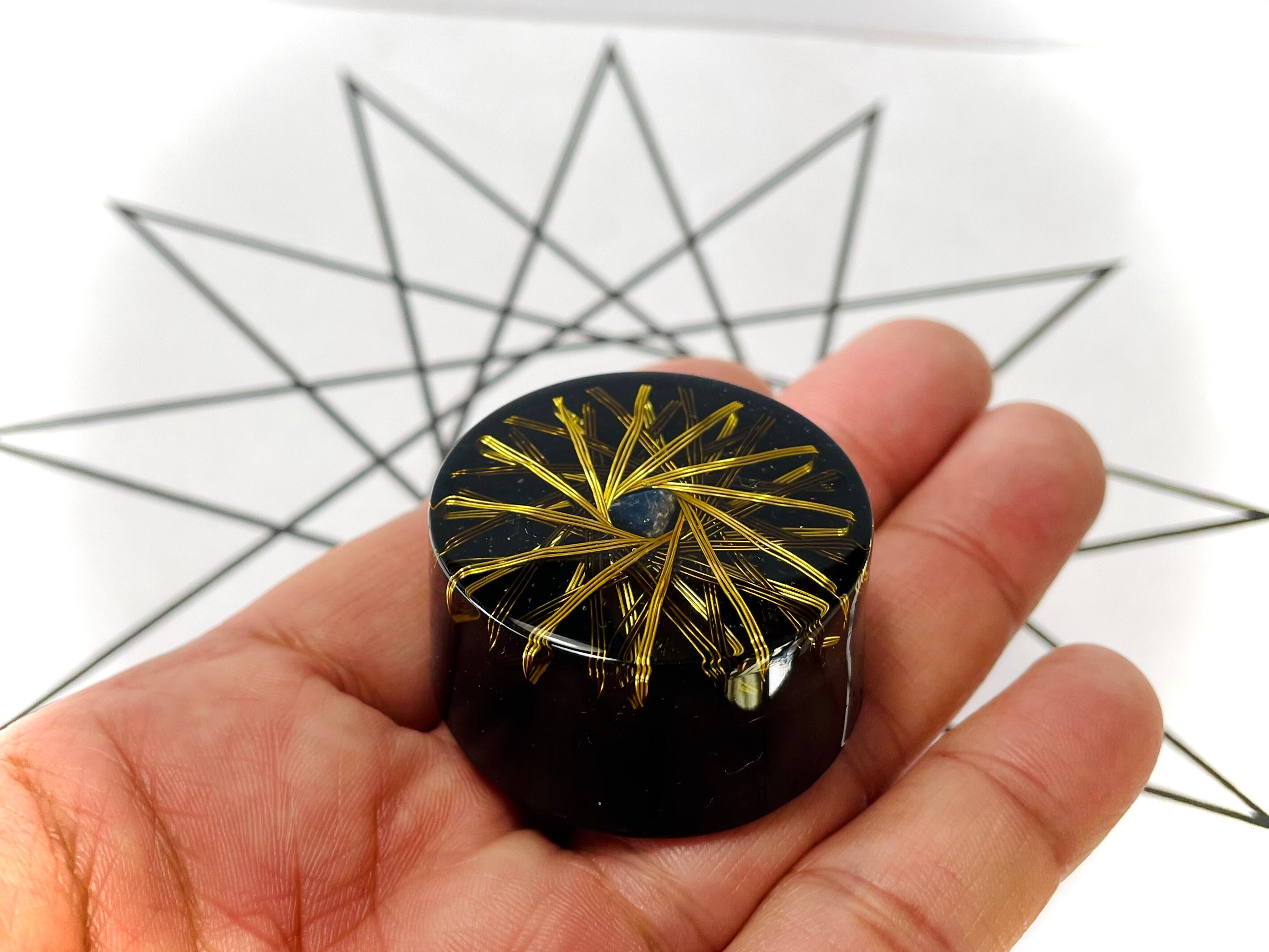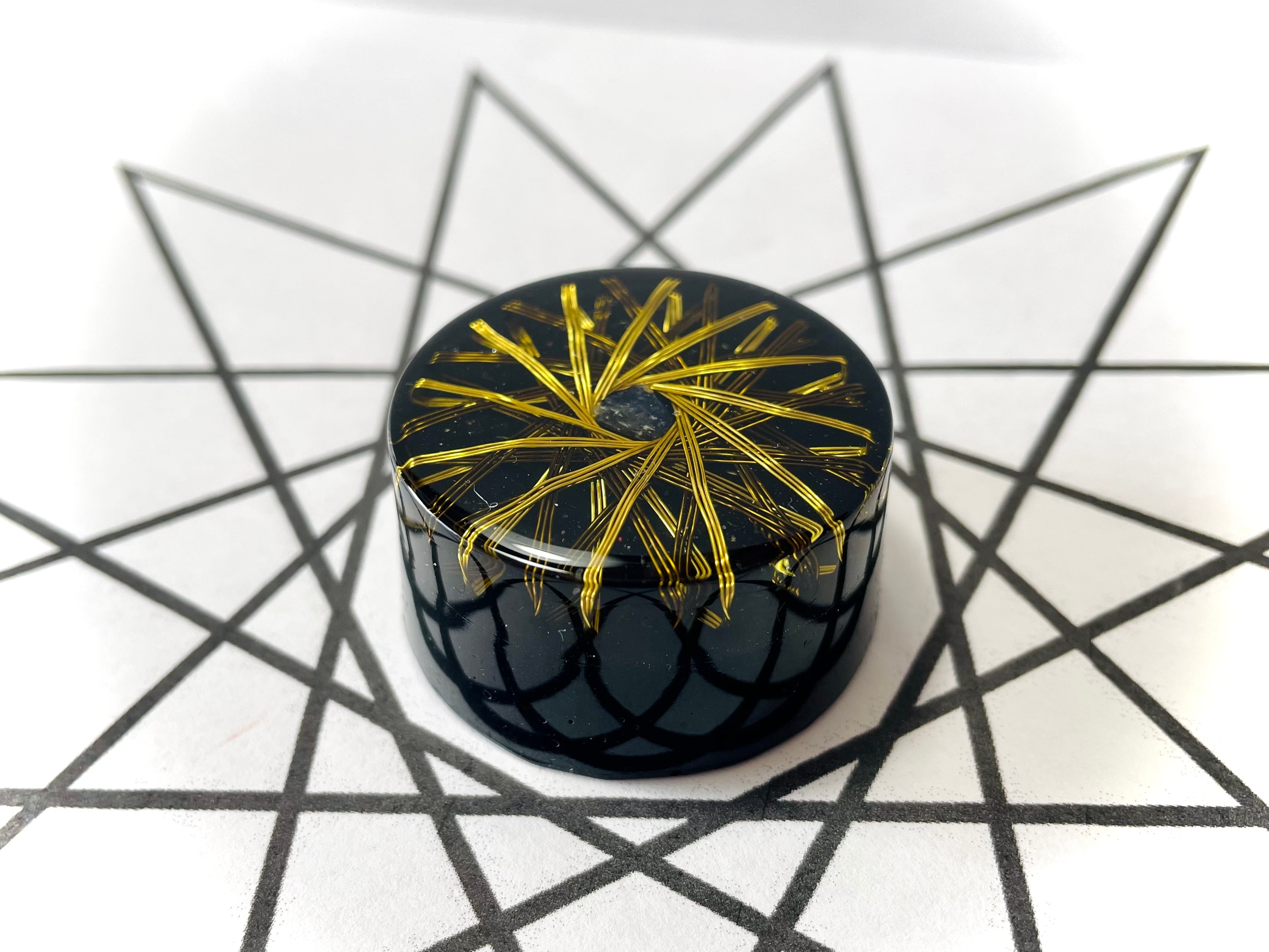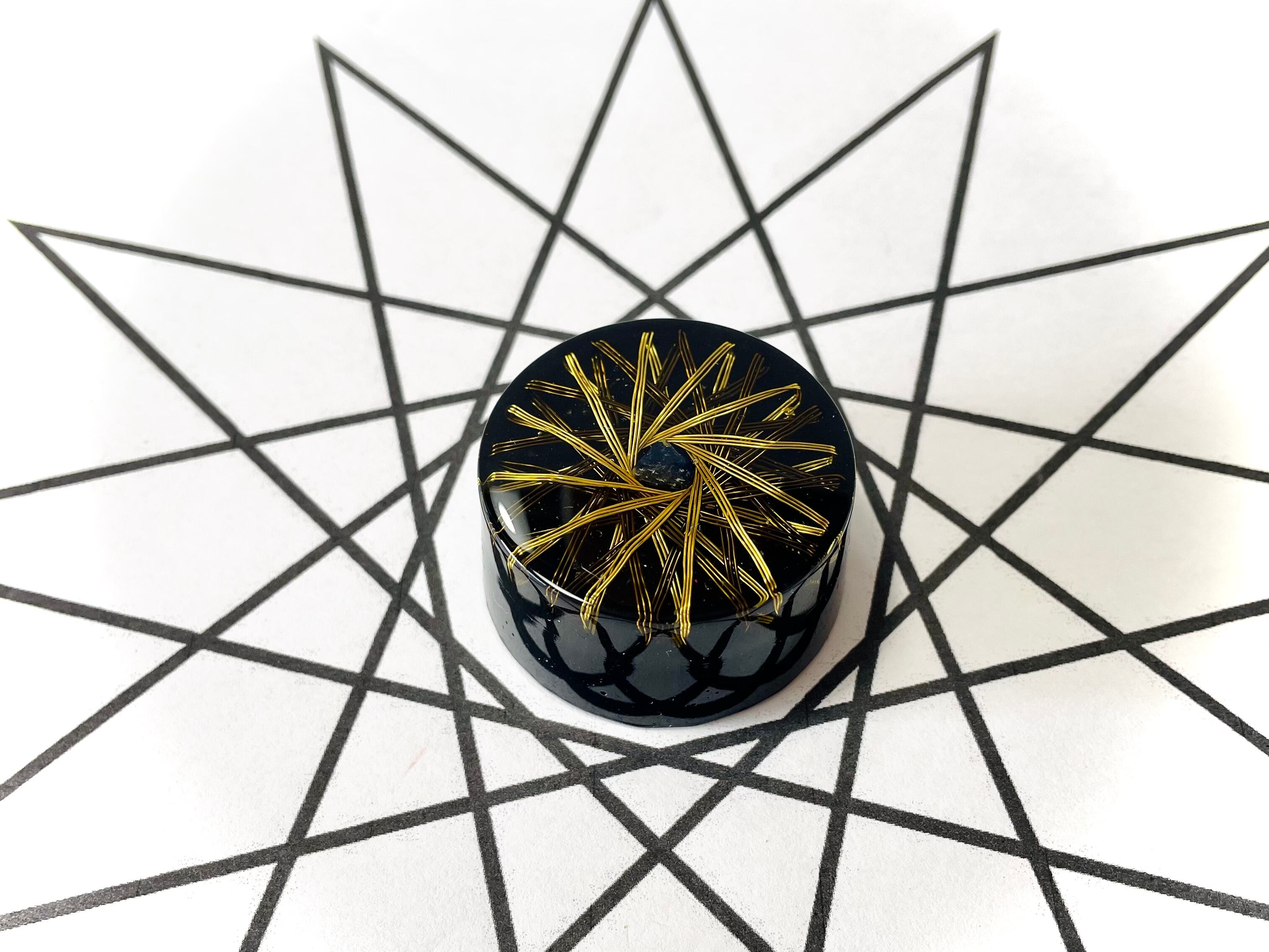 特殊な法則で十二芒星のデザインで銅線を巻くことにより、中心にトーラス状のvortexエネルギーを発生させます