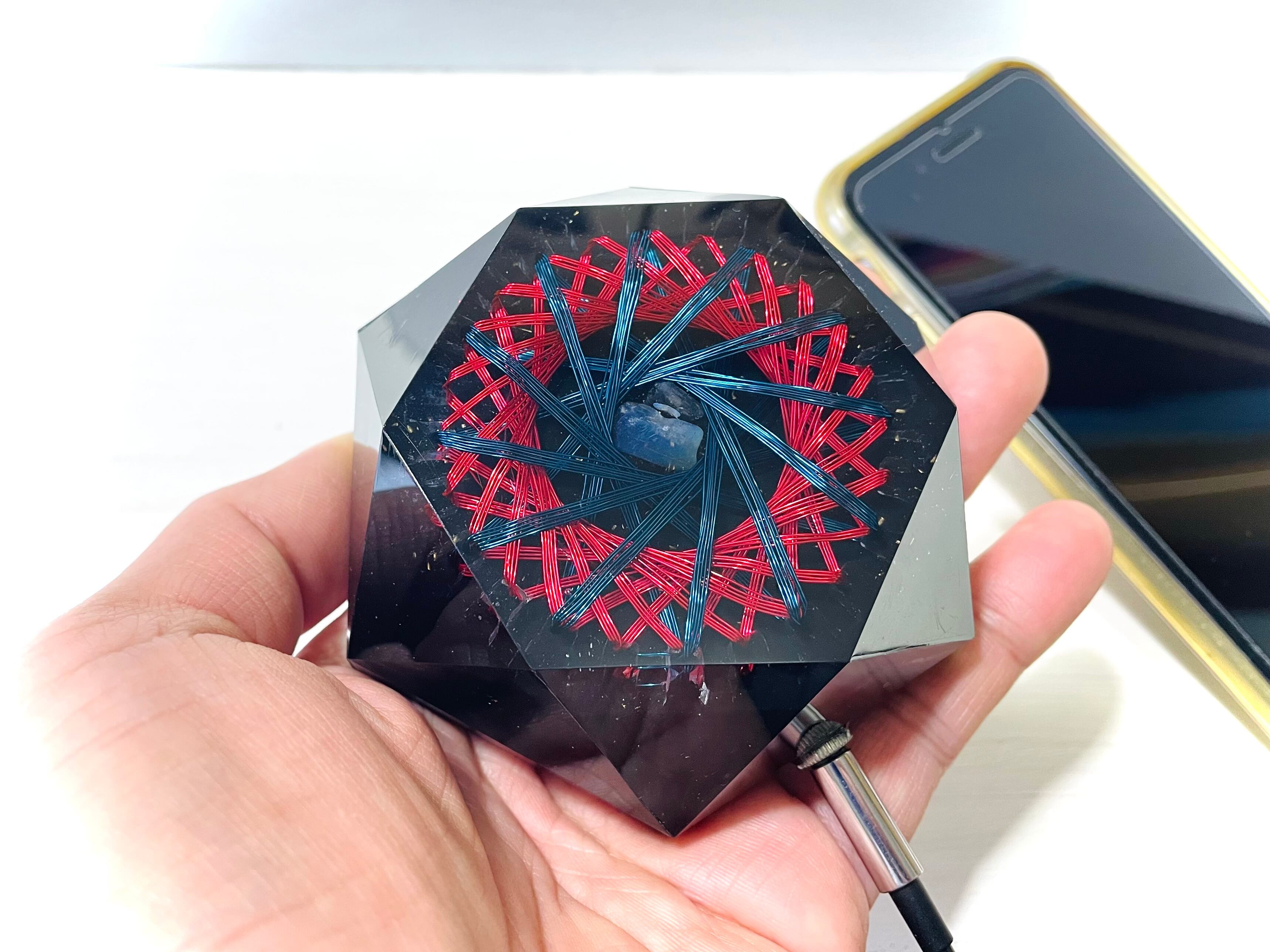 特殊な法則で十二芒星のデザインで銅線を巻くことにより、中心にトーラス状のエネルギーを発生増幅するジェネレーターとなります
