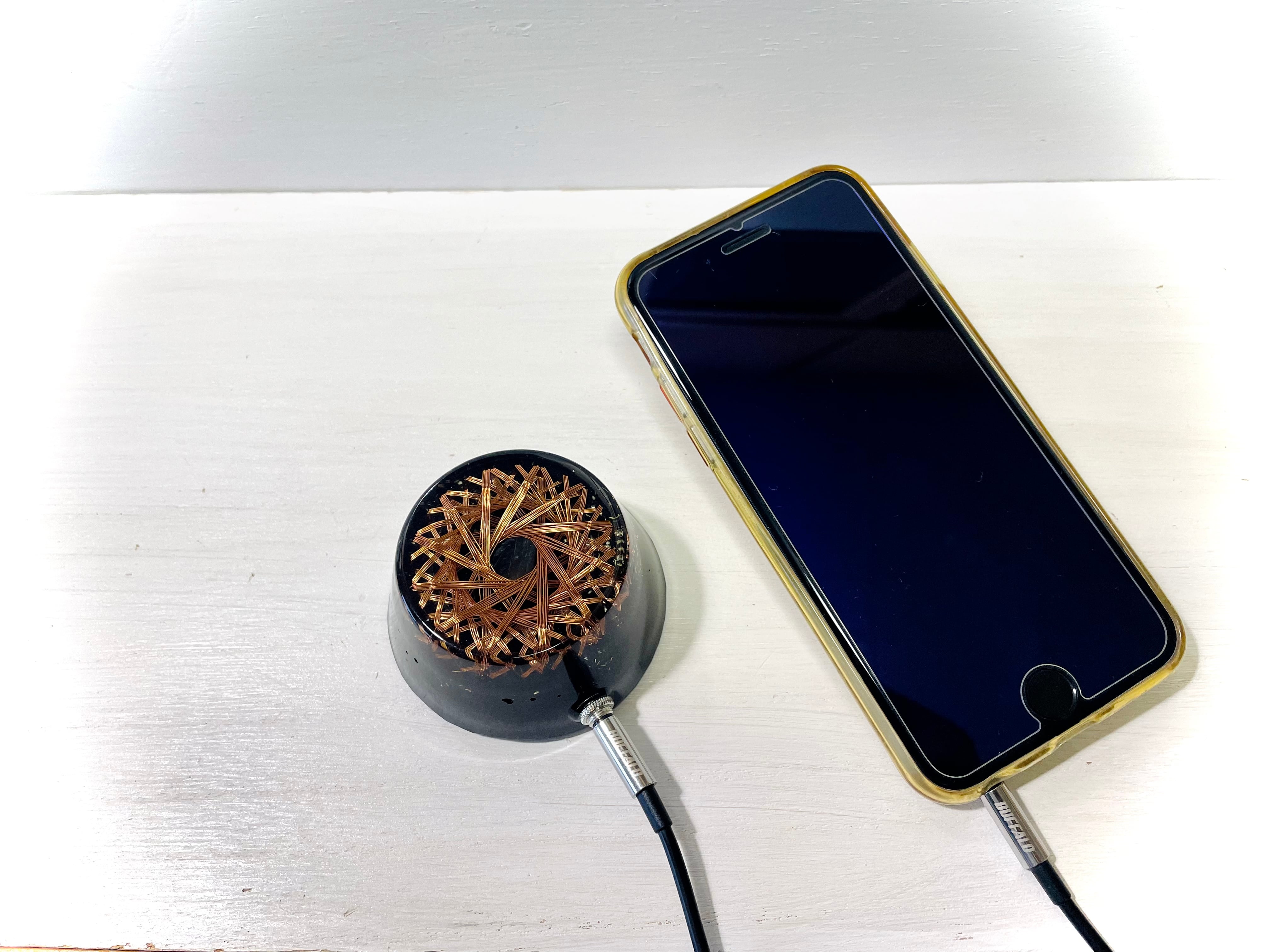 オルゴナイトとの相乗効果により、コイルの中心は特別なvortex(渦)エネルギーが発生増幅されるので、空間を整えることができます