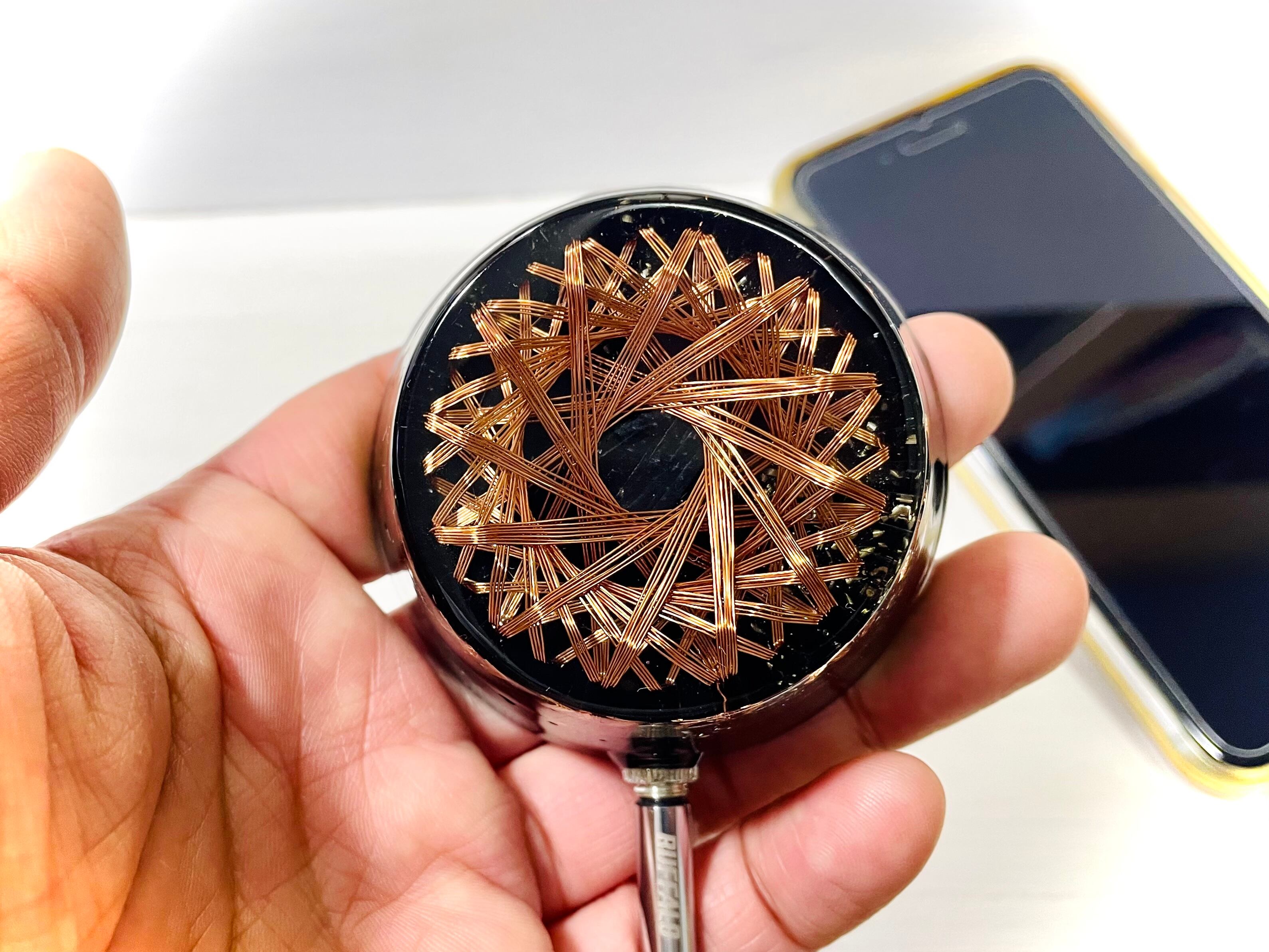 coilの中心からvortex(渦)エネルギーを発生させるように、特別な形で製作した銅線が中に入ります
