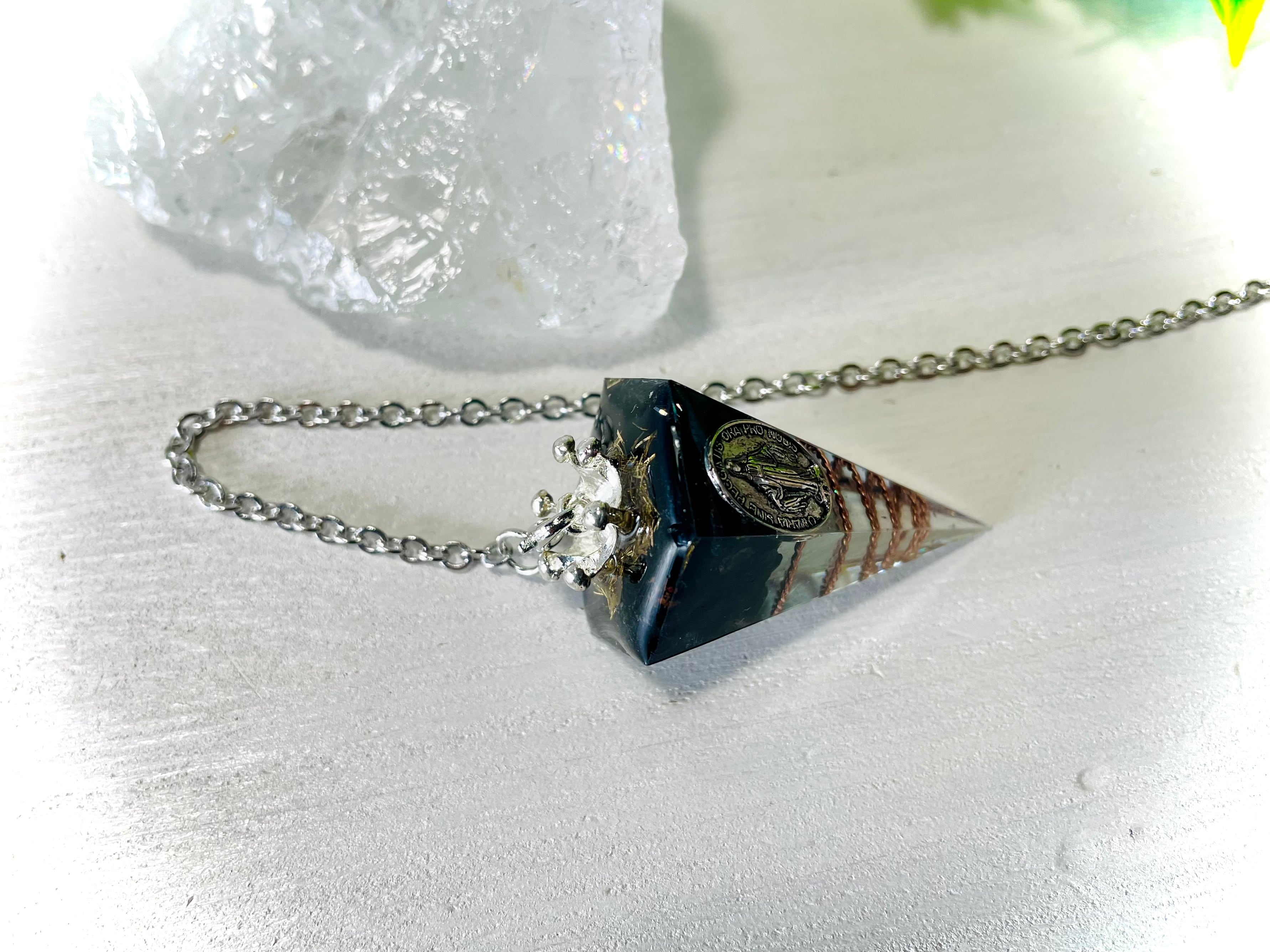 【六角錐オルゴナイトペンデュラム】(ブラックトルマリン)