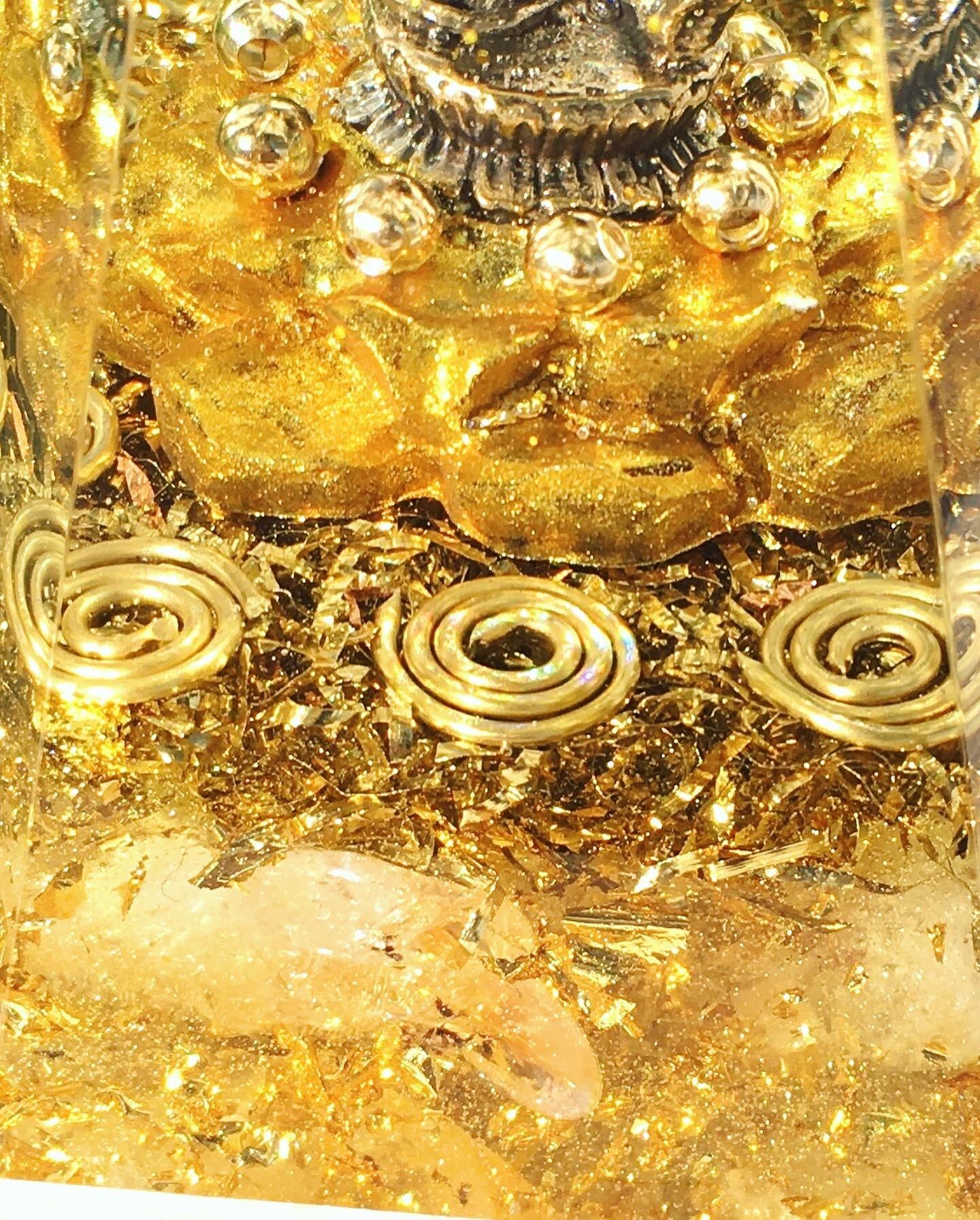 素材:レジン・銅線を巻いたポイント水晶・金属片・シトリンのさざれ石・クリスタルの波動転写・ガネーシャ神の像