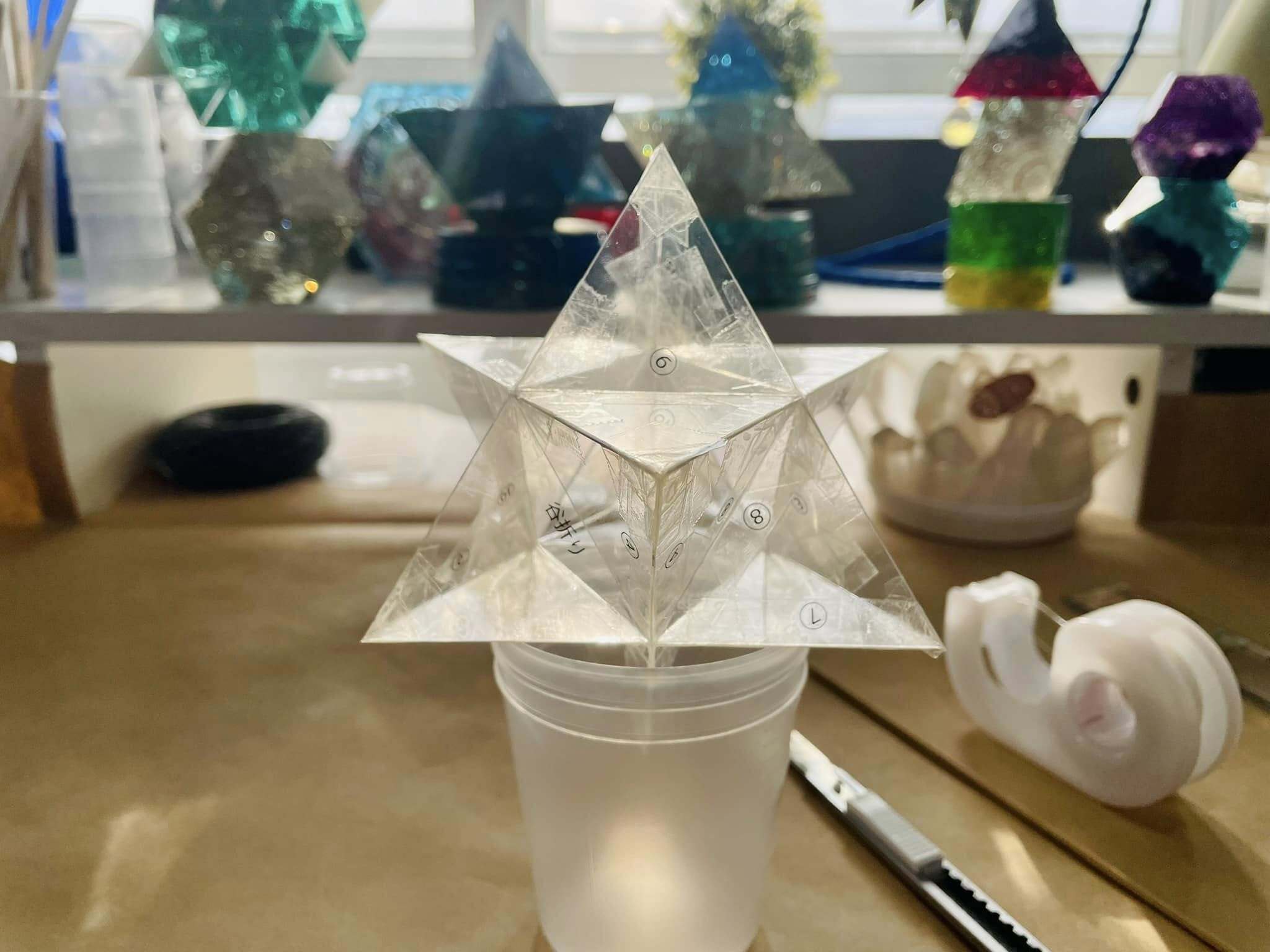 実際にマカバ型のオルゴナイトを製作し、台座も創ります。その中で神聖幾何学に関する基礎知識を学んでいただきます。