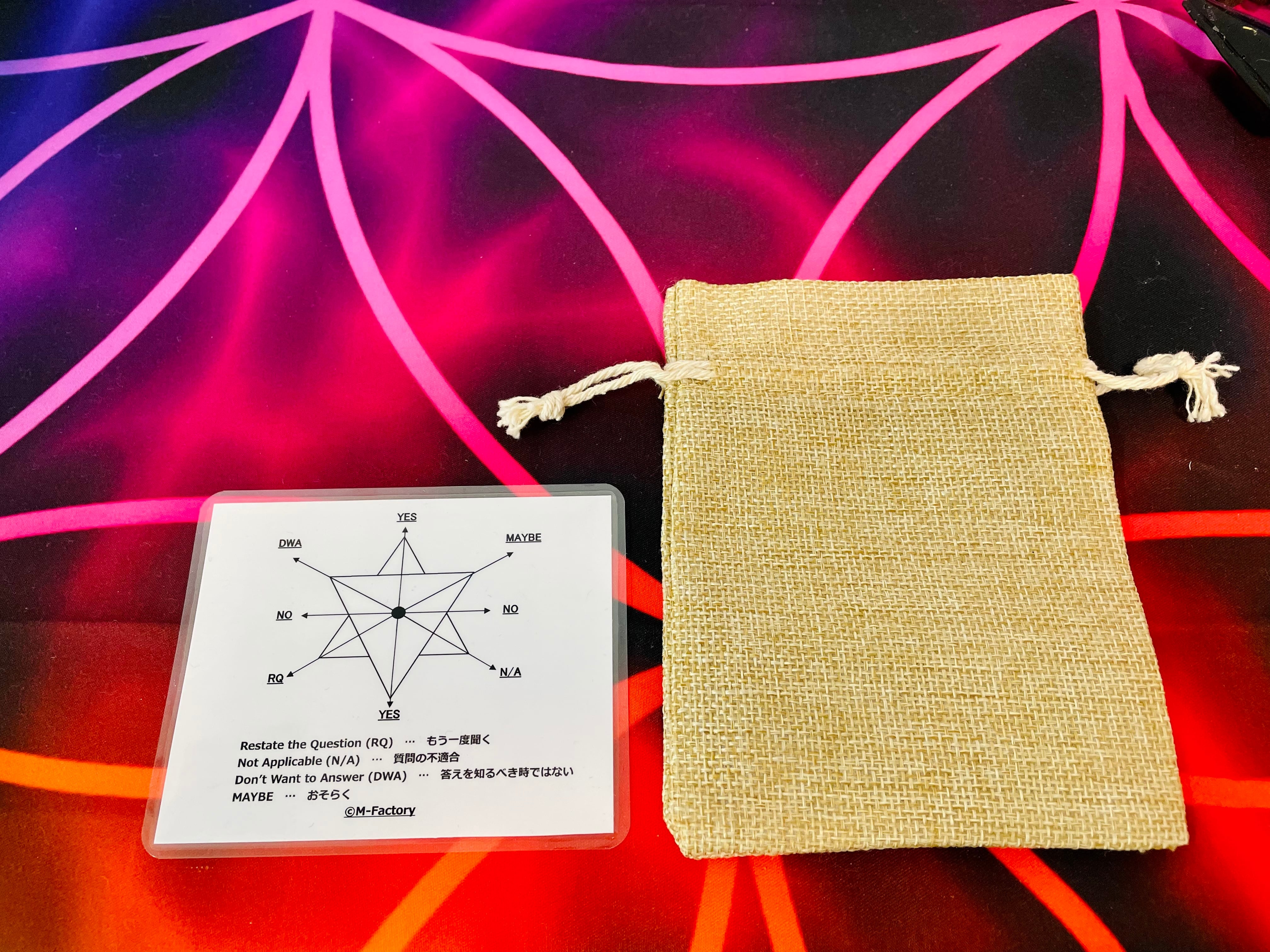 オリジナルダウジングチャートとペンデュラムが入る専用麻ポーチ付きなので、持ち運ぶとができます♪