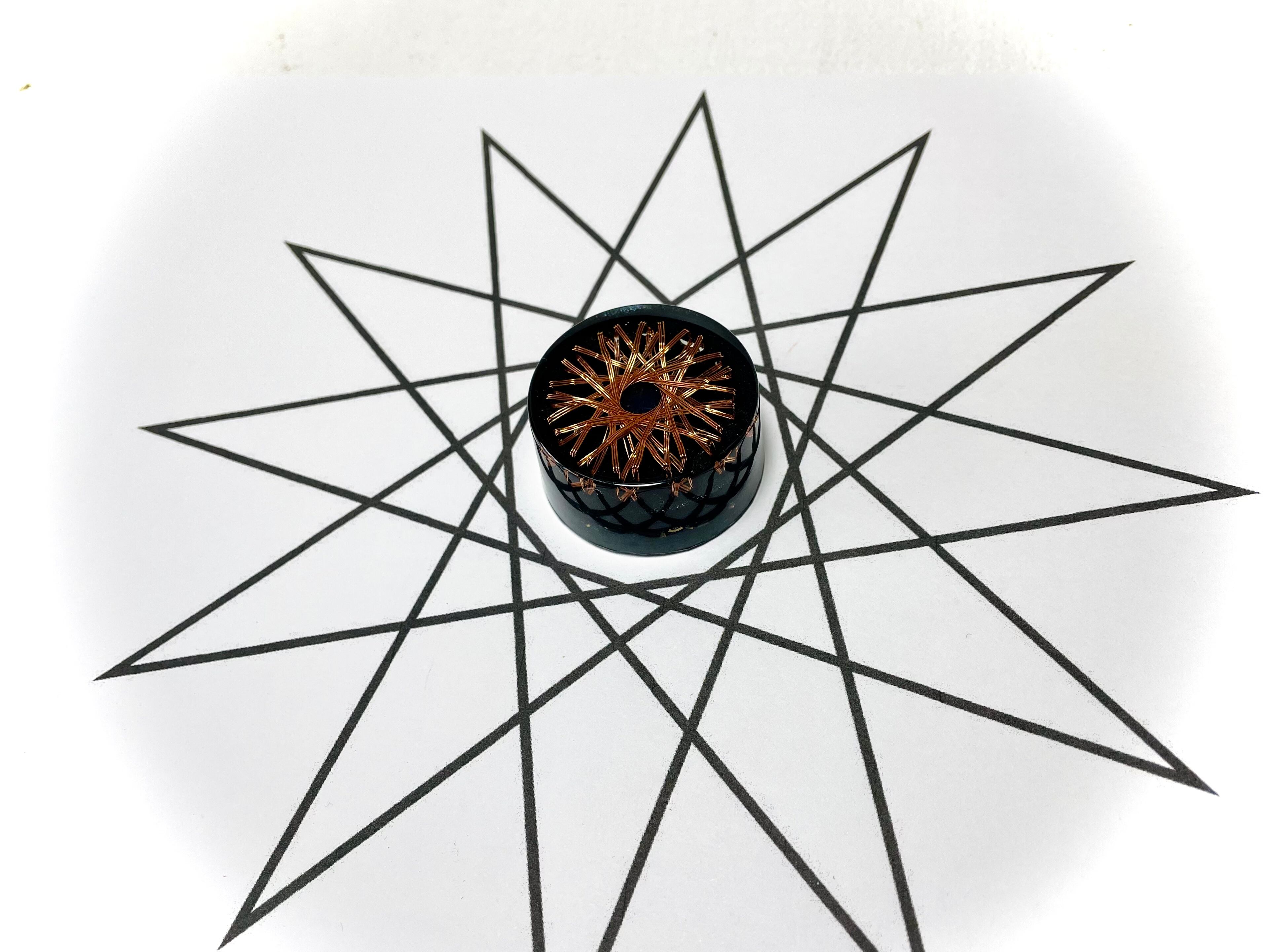 特殊な法則で十二芒星のデザインで銅線を巻くことにより、中心にトーラス状のvortexエネルギーを発生させます